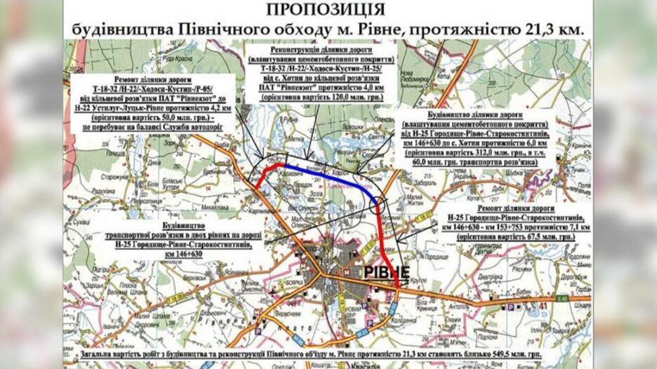 Сам проєкт задумали ще за часів радянської України. Він передбачав створення об’їзної дороги, щоб розвантажити Рівне від транзитного транспорту та покращити сполучення областей країни. На практиці ж роботи над об’єктом стартували лише 2019 року, а після початку повномасштабного вторгнення були заморожені.