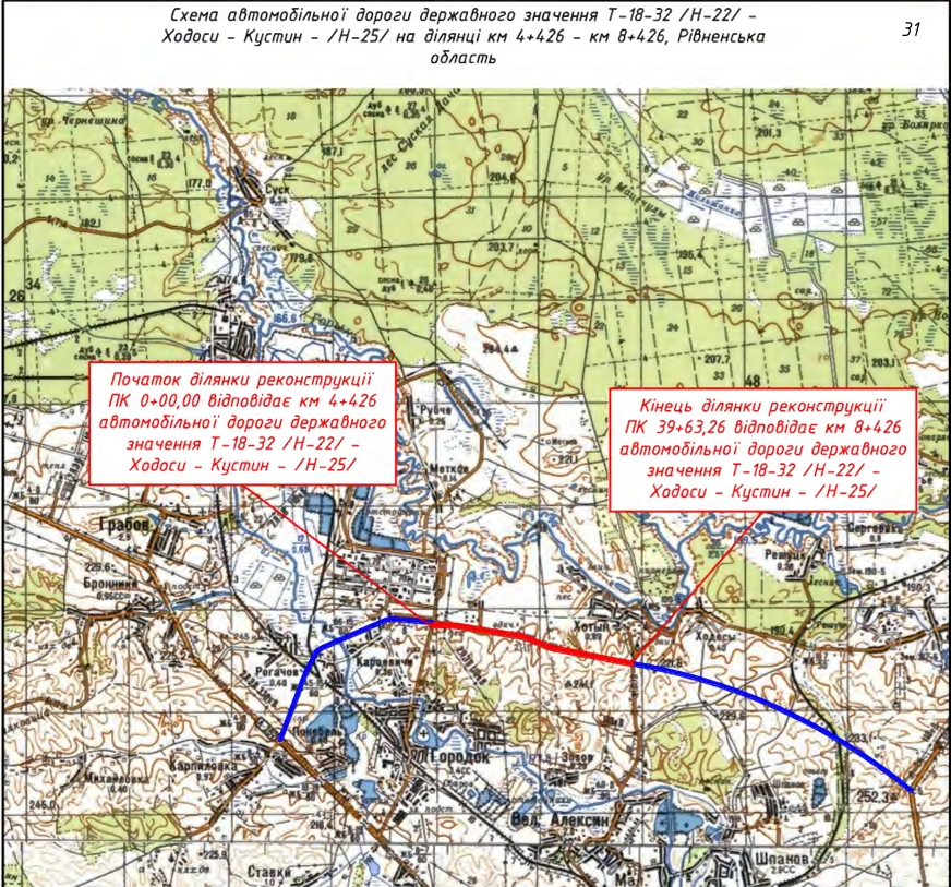 Ще у 2020 році з фірмою уклали договір вартістю 123 мільйони 455 тисяч гривень на капітальний ремонт відрізка дороги Н-25 Городище – Рівне – Старокостянтинів. Завершити роботи за угодою планувалося до кінця 2021 року. Проте зрештою терміни перенесли аж на чотири роки — на кінець січня 2026 року, а суму договору зменшили до 121 мільйона 680 тисяч гривень.
