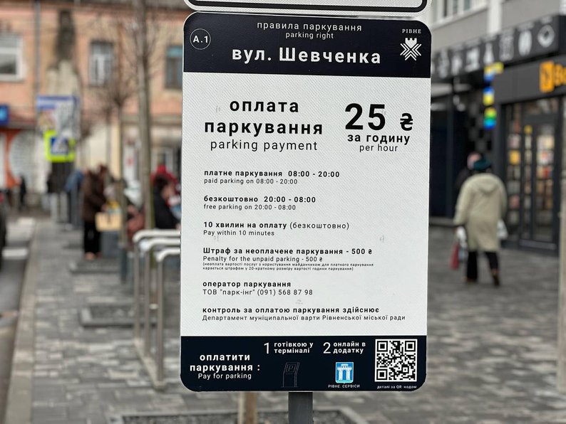Як повідомляли «Рівненські гроші», з березня 2025 року платна парковка вже запрацювала на вулиці Шевченка (від вулиці Пересопницької до вулиці Гетьмана Мазепи).