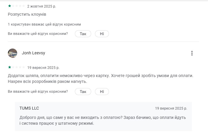 З 66 оцінок в Google Play – 60 користувачів поставили застосунку 1.