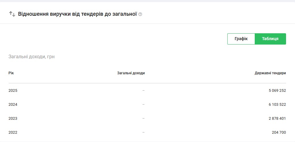 Судячи з відсоткового відношення загальних доходів компанії до кількості державних закупівель, «ТУМС» фактично живе за рахунок тендерів.