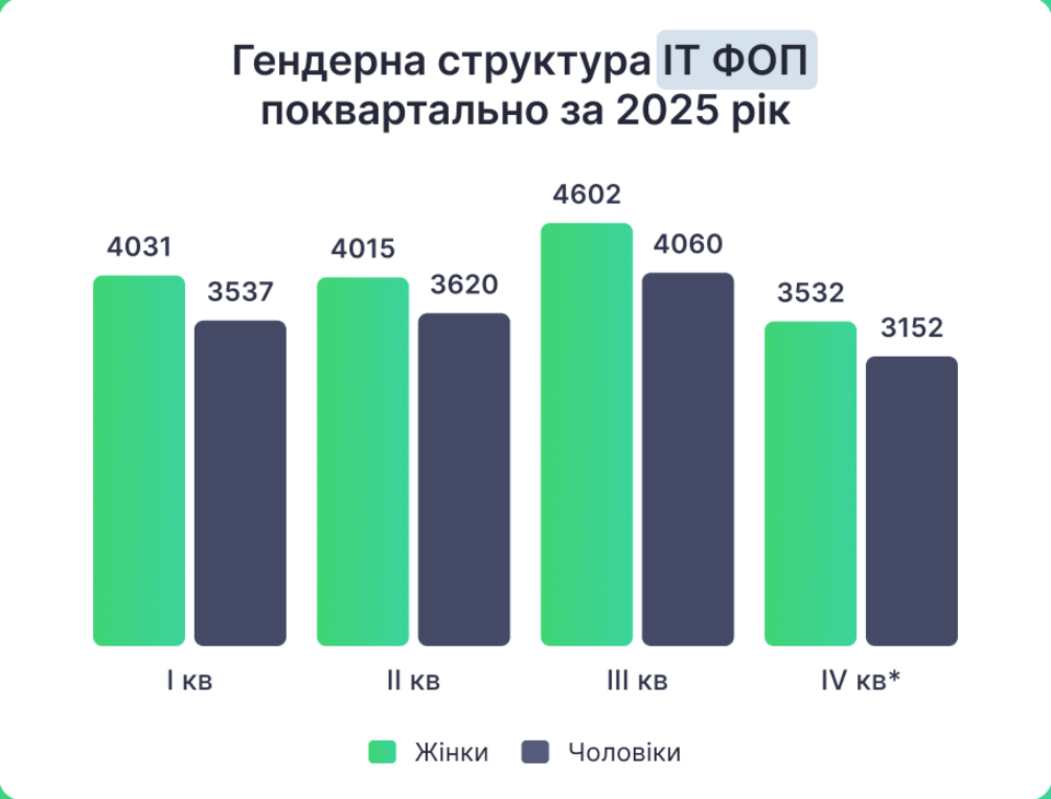 З 2024 року жінки вже переважають серед ФОП (понад половина), ця тенденція зберігається у 2025 році.